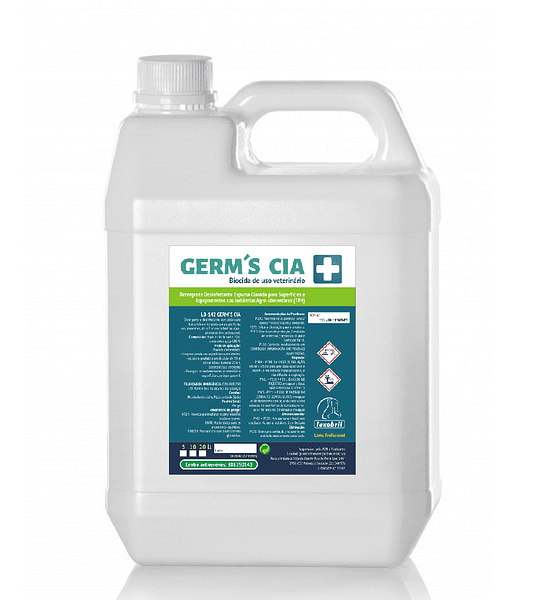 LB-142 GERM´S CIA,  é um produto químico de limpeza e desinfeção, resultante da combinação de hipoclorito de sódio com tensioativos compatíveis e estáveis em meios oxidantes.
